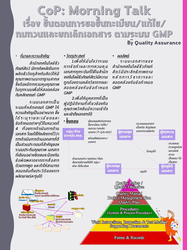CoP60_01 CoP : Morning Talk เรื่องขั้นตอนการขอขึ้นทะเบียน/แก้ไข/ทบทวน และยกเลิกเอกสารตามระบบ GMP > รายละเอียด