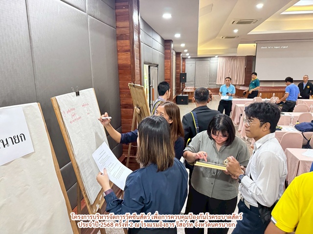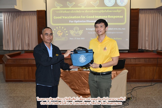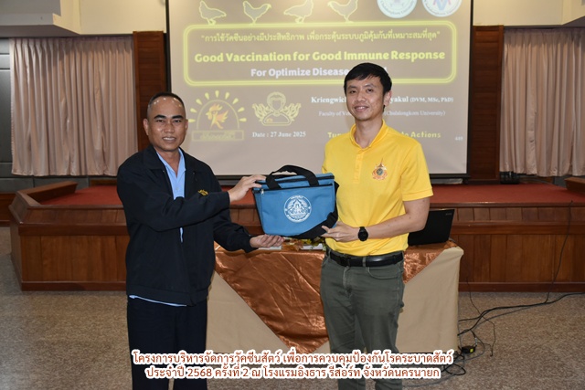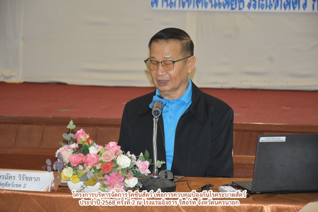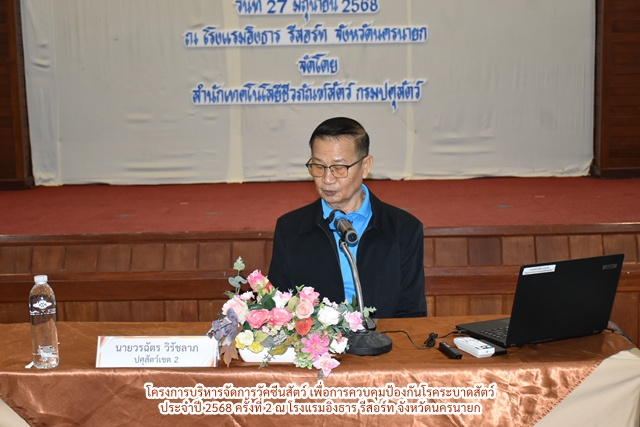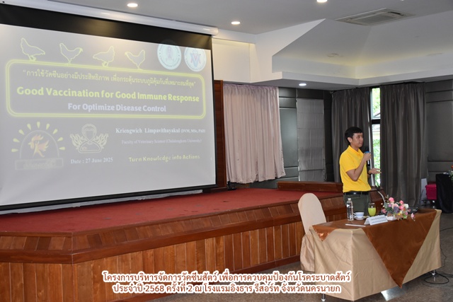 วันที่ 27 มิถุนายน 2568 นายวรฉัตร วิรัชลาภ ปศุสัตว์เขต 2 เป็นประธานเปิดการโครงการบริหารจัดการวัคซีนสัตว์เพื่อการควบคุมป้องกันโรคระบาดสัตว์ ประจำปี พ.ศ.2568 ครั้งที่ 2 จัดโดยสำนักเทคโนโลยีชีวภัณฑ์สัตว์ การจัดโครงการฝึกอบรมในครั้งนี้มีวัตถุประสงค์เพื่อการติดตาม ประเมินผล และวิเคราะห์สถานการณ์การใช้วัคซีนสัตว์ และเพื่อเพิ่มประสิทธิภาพการเบิกจ่ายวัคซีนให้ครอบคลุมและแม่นยำตามความต้องการในพื้นที่ และมีกลุ่มเป้าหมายเป็นเจ้าหน้าที่กรมปศุสัตว์ในสำนักงานปศุสัตว์เขต ปศุสัตว์จังหวัด ปศุสัตว์อำเภอ และอาสาปศุสัตว์ ในพื้นที่ปศุสัตว์เขต 2 ณ โรงแรมอิงธารรีสอร์ท จังหวัดนครนายก