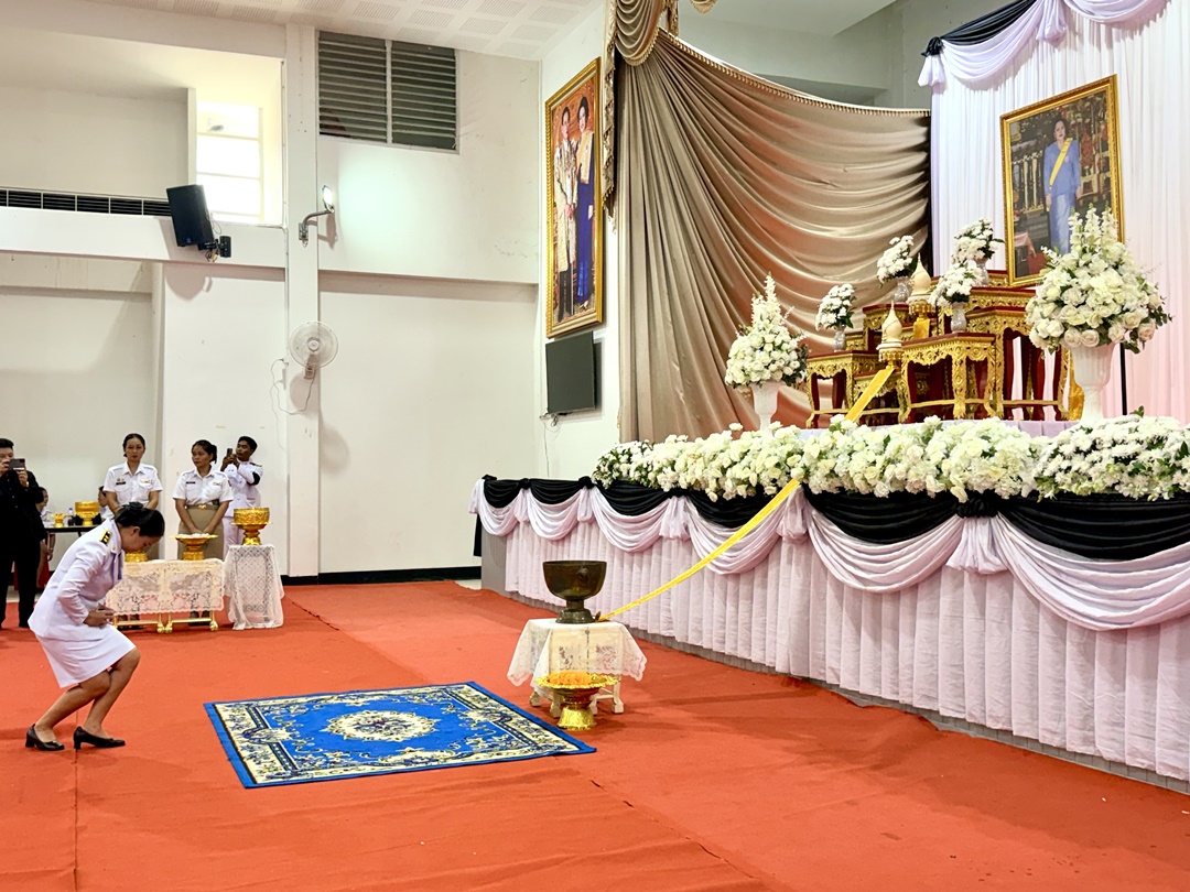 วันอาทิตย์ที่ 26 ตุลาคม 2568 นายจาตุรนต์ พลราช ผู้อำนวยการสำนักเทคโนโลยีชีวภัณฑ์สัตว์ มอบหมายให้ข้าราชการและเจ้าหน้าที่ของสำนักเทคโนโลยีชีวภัณฑ์สัตว์ เข้าร่วมพิธีถวายน้ำสรงพระบรมศพเบื้องหน้าพระฉายาลักษณ์ สมเด็จพระนางเจ้าสิริกิติ์ พระบรมราชินีนาถ พระบรมราชชนนีพันปีหลวง ณ ศาลาประชาคมเมืองปากช่อง อำเภอปากช่องจังหวัดนครราชสีมา โดยมี นายไพรัตน์ อินทร์ปัญญา นายอำเภอปากช่อง เป็นประธานในพิธี พร้อมด้วยหัวหน้าส่วนราชการ ข้าราชการทุกหมู่เหล่า หน่วยงานภาครัฐ ภาคเอกชน จิตอาสาพระราชทาน นักเรียน นักศึกษา และประชาชนชาวอำเภอปากช่อง เข้าร่วมพิธีด้วยความจงรักภักดีและสำนึกในพระมหากรุณาธิคุณอย่างหาที่สุดมิได้